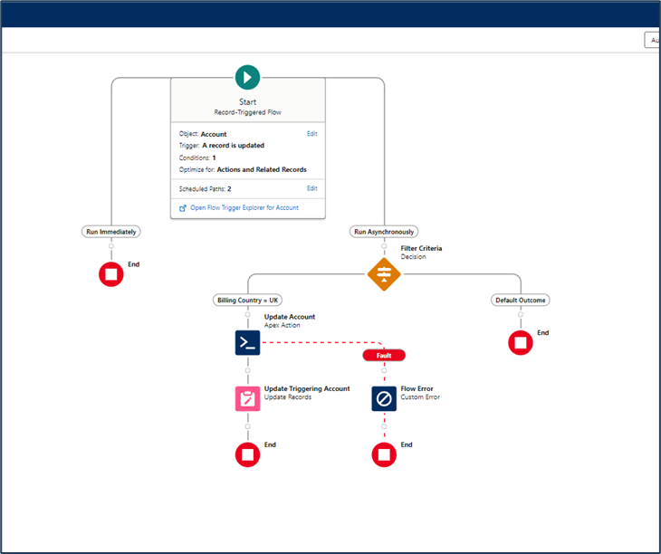 Below is an example of a flow that automatically refreshes account information to ensure that the latest details (e.g., credit scores, financial information) are fetched from Creditsafe. This flow automates the process, saving time and ensuring accuracy.