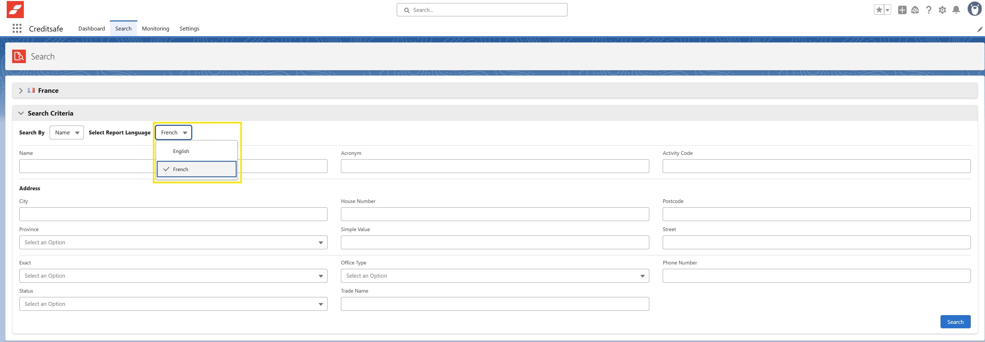 - Your searches and Company Reports will now be performed and viewed in the selected language.