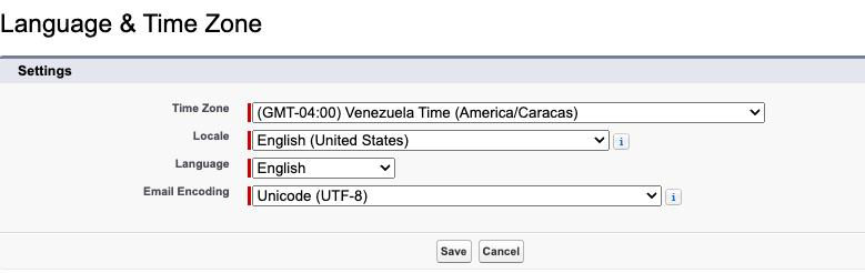- In Salesforce Classic (verbeterde instellingen): Uw naam | Mijn instellingen | Persoonlijk | Taal en tijdzone